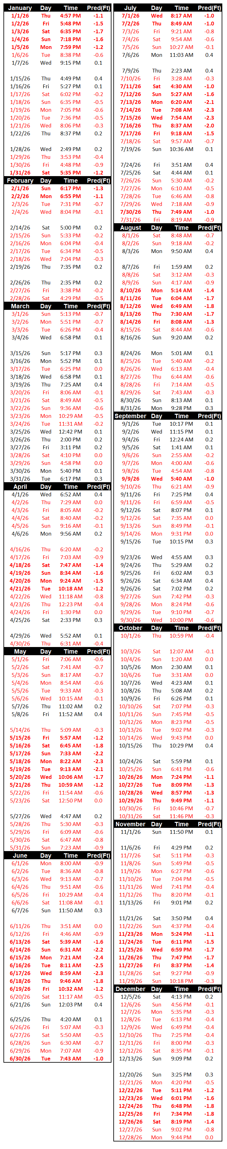Low Tides in Bold Red Are Excellent – Tides in Red Good